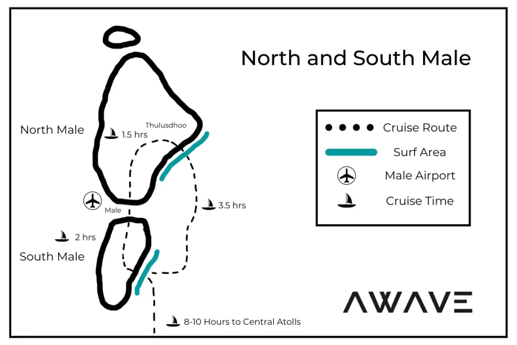This is the most affordable way to surf onboard a charter in the Maldives. All Cruise Only trips start and finish at Male Airport. You would arrive and step straight onboard and cruise straight from there! If you wanted to surf outside the North/South Male Atolls, your group would need to pay a fuel surcharge for the extra fuel used.