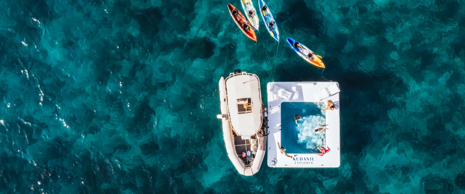 Spread over 3 decks, Kudanil Explorer has a large saloon on the main deck with an adjacent library lounge and wine store. The charter can accommodate up to 16 persons across 8 staterooms on the upper deck. To top the charter off, is a huge top deck, with a jacuzzi and sky saloon. You will be attended to at all times with a full crew of 21 persons on board.