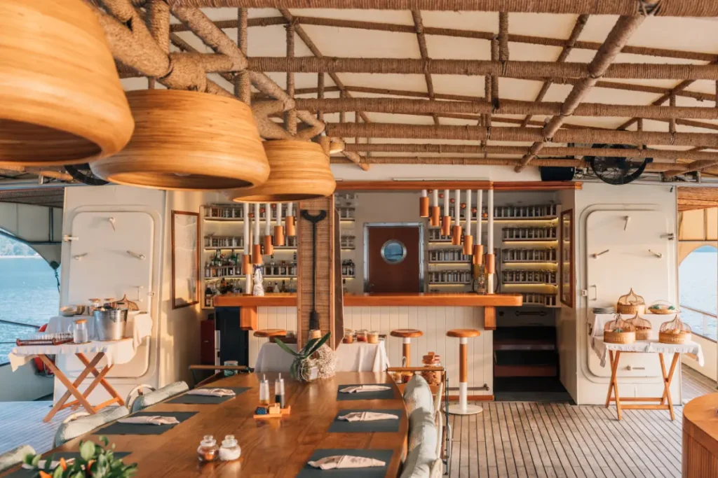 The dining options are at the heart Of Kudanil Explorer’s offering. The charter offers an incredible culinary experience onboard to rival any restaurant. All trips are fully catered with a wide range of Indonesian and international dishes on offer. The onboard catering team is able to cater to any requirements or preferences. Please let our team know of any requests prior to travel and we can accommodate these!