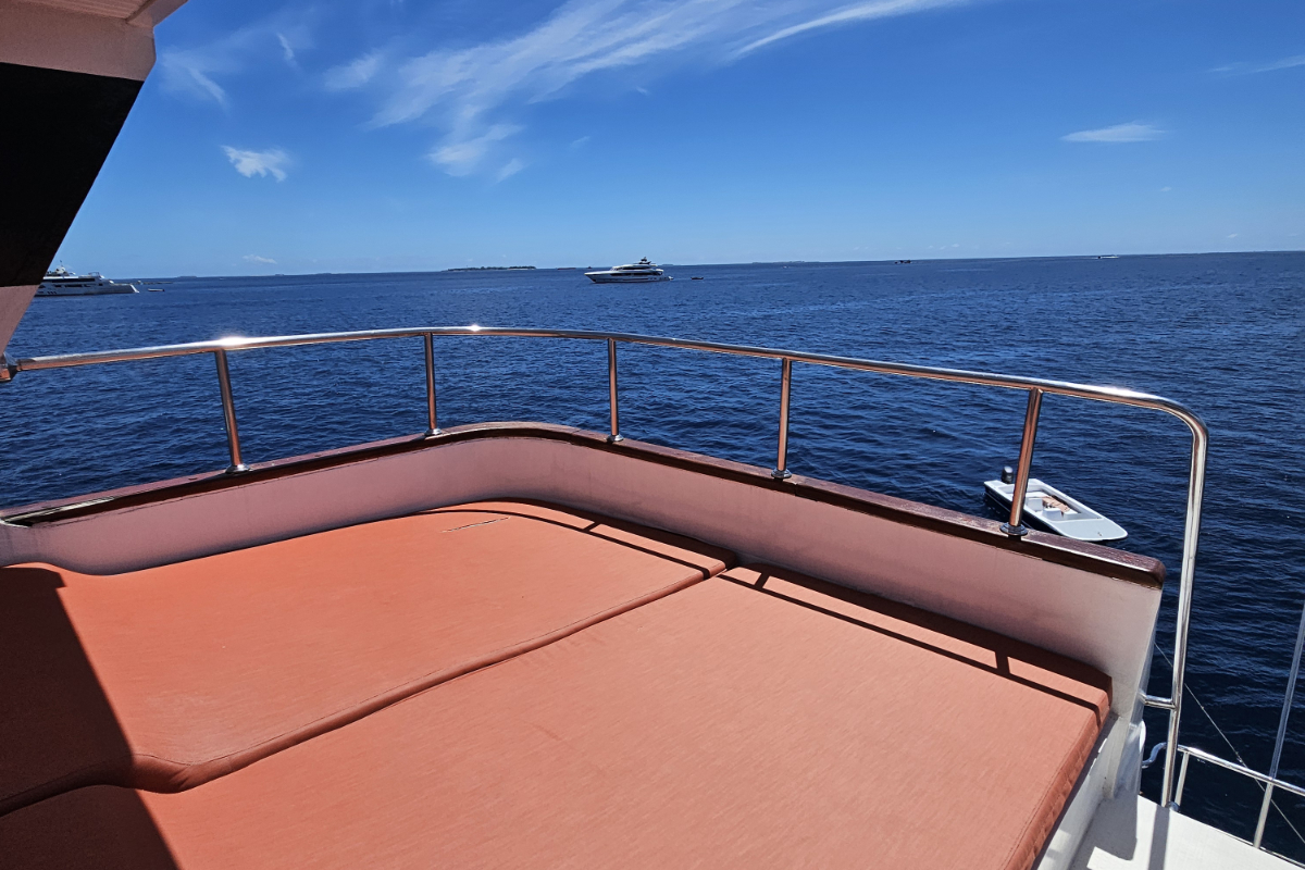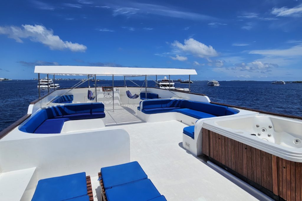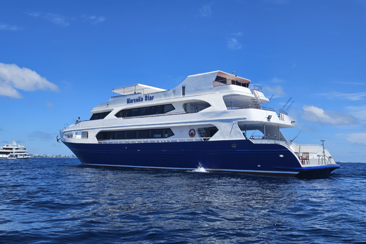 Coming in at 37 m in length and 8 m in width, Marselia Star is a large and well-appointed surf charter. This beautiful and well-designed boat is capable of cruising in all areas of the Maldives for those chasing waves in paradise!
