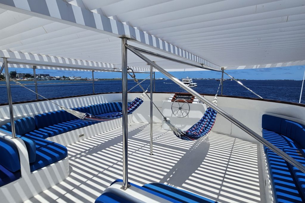 The charter has a large restaurant, bar, and lounge area with loads of space to accommodate larger groups. This is very comfortable and almost like a resort lounge! Throughout the charter are various sun decks and loads of space to relax!