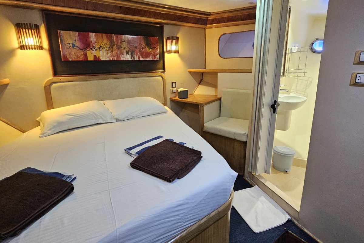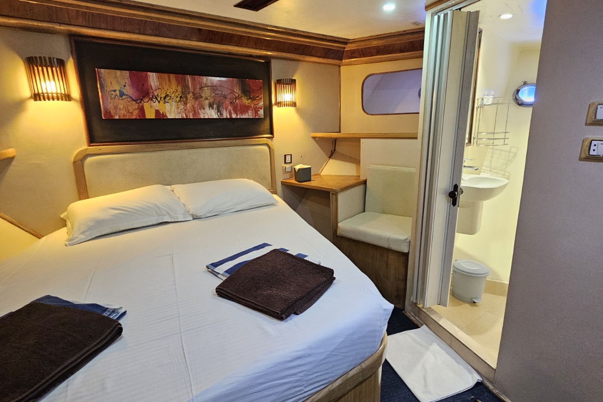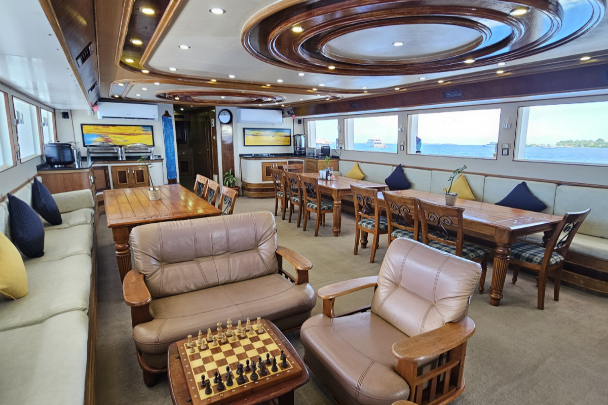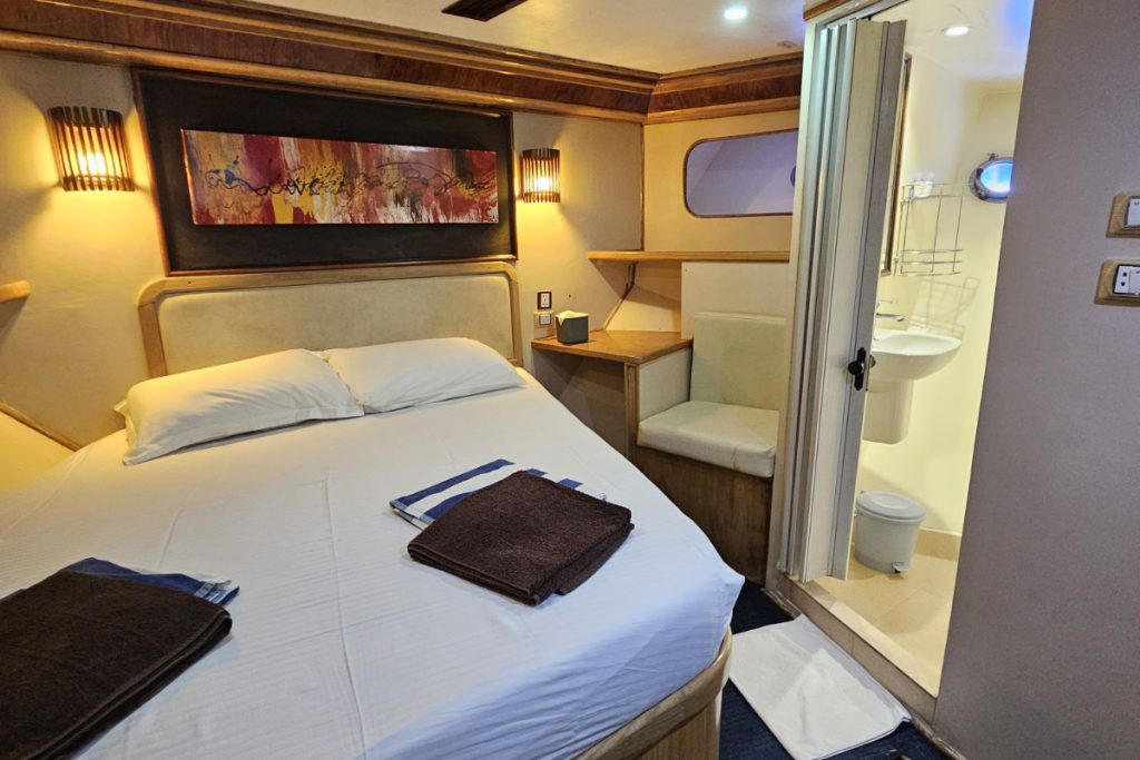 The charter has an expansive dining/bar area for guests to relax in. All guest cabins are designed with comfort in mind, and cabins have air conditioning and en-suite.