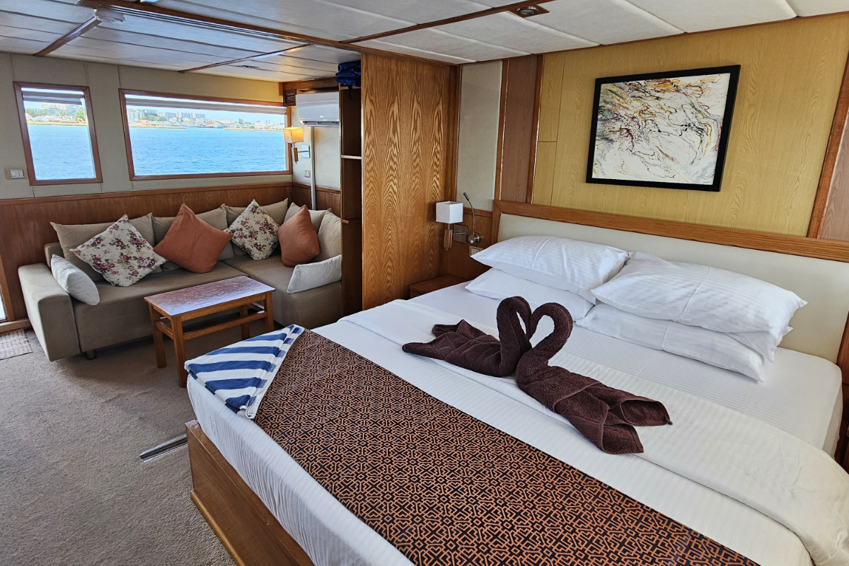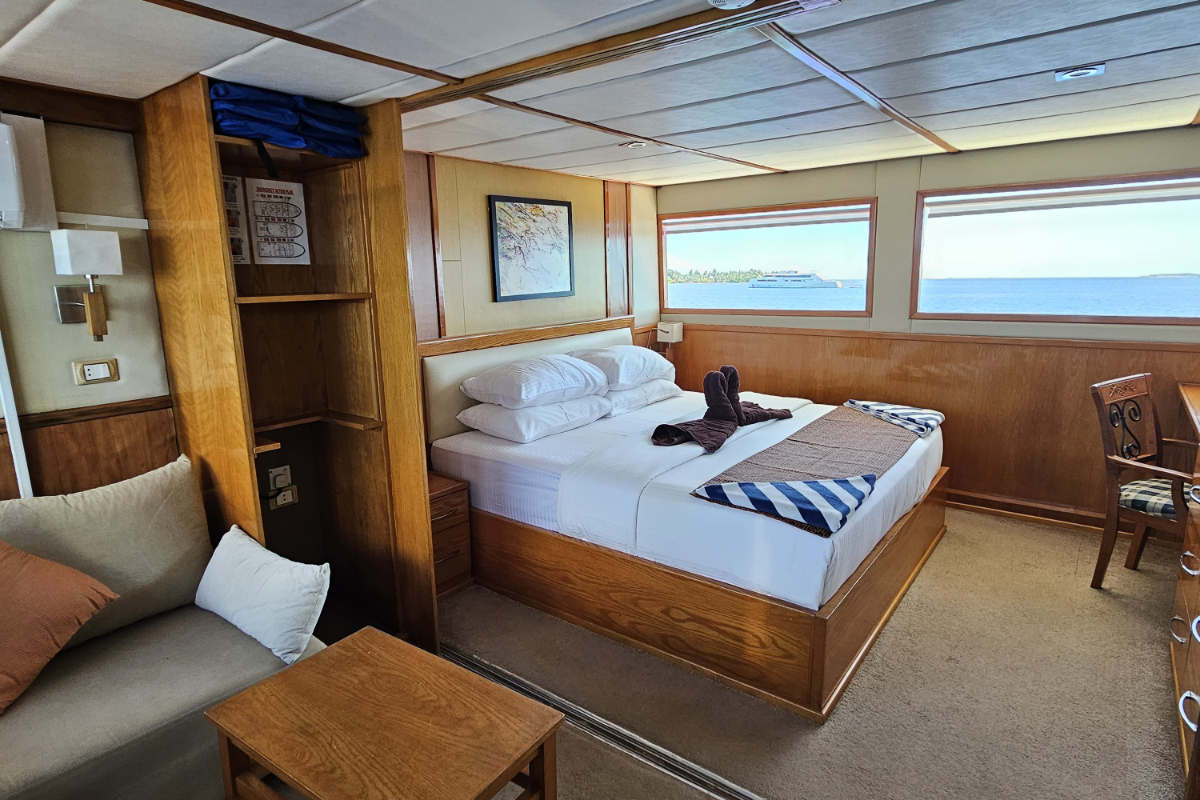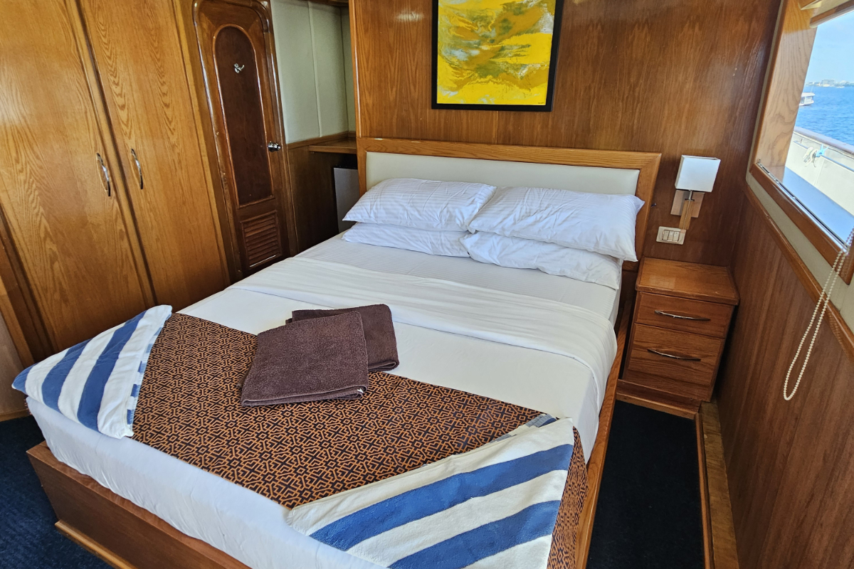 The charter has an expansive dining/bar area for guests to relax in. All guest cabins are designed with comfort in mind, and cabins have air conditioning and en-suite.