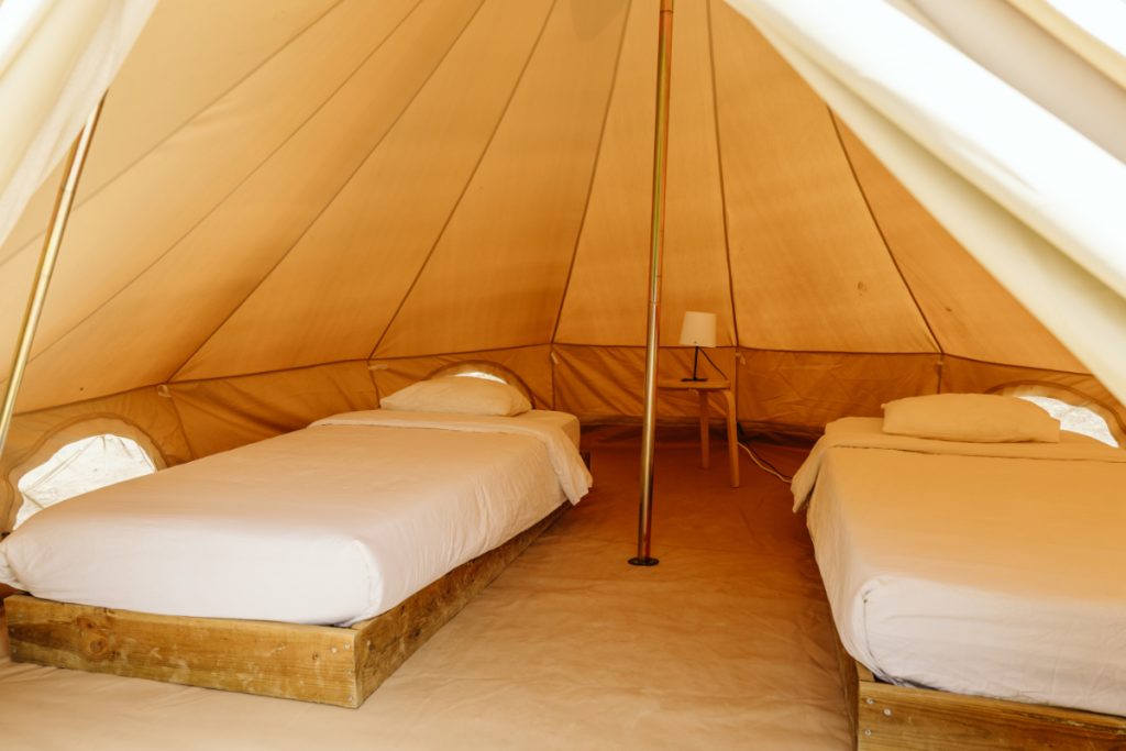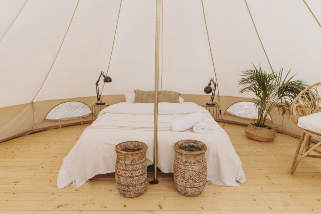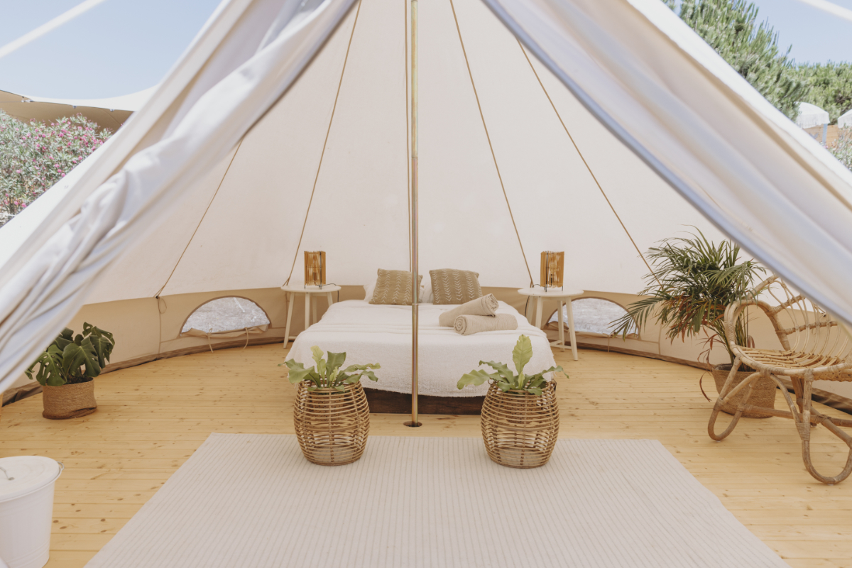 With their stylish, cosy decor, glamping tents offer a luxurious and private retreat in a quieter area of the camp. Ideal for couples or families, they provide a comfortable yet immersive outdoor experience where you can enjoy nature without sacrificing comfort.