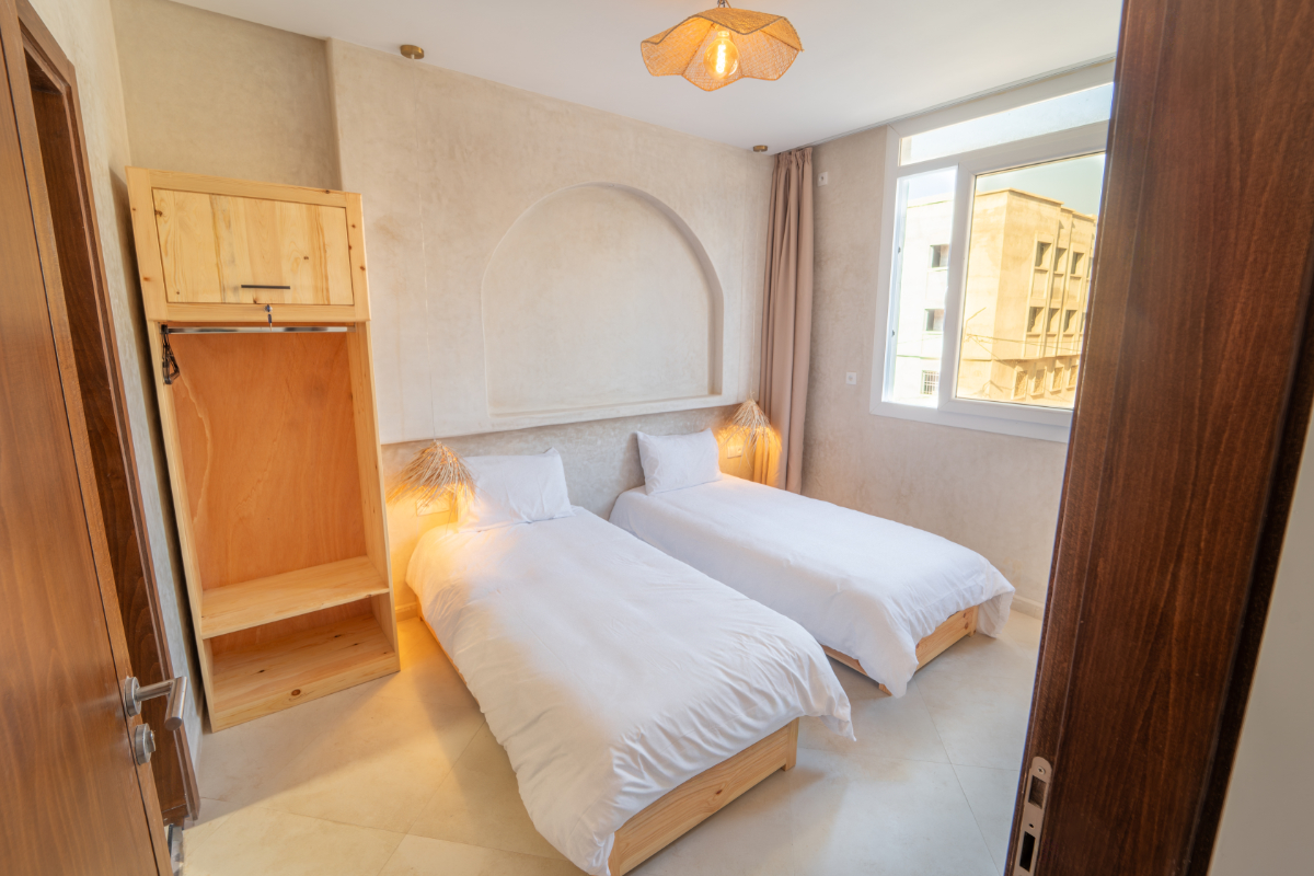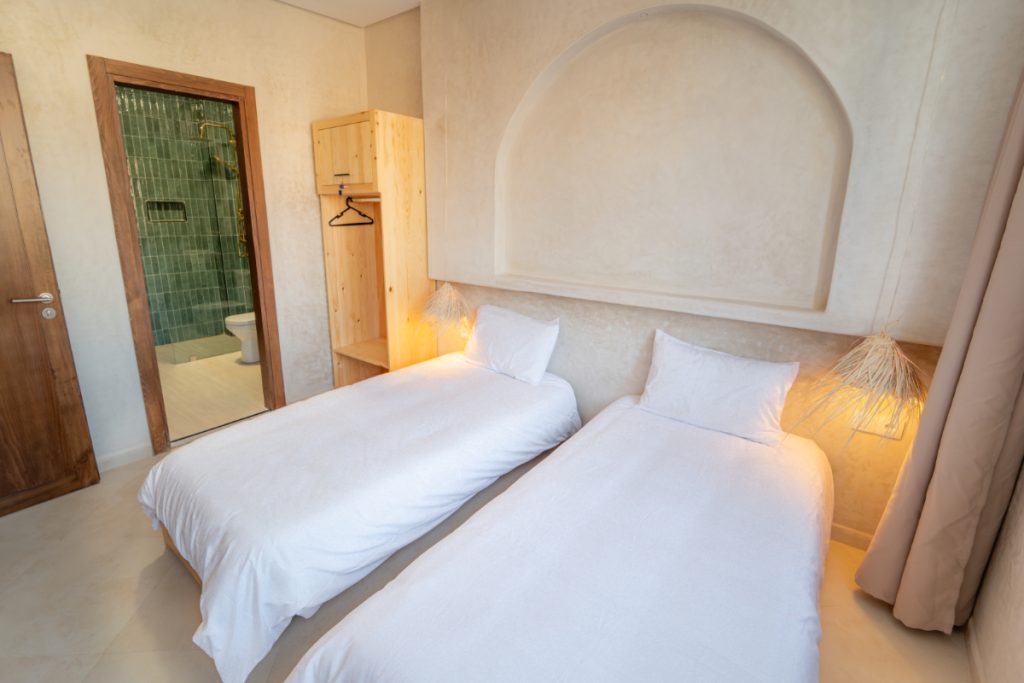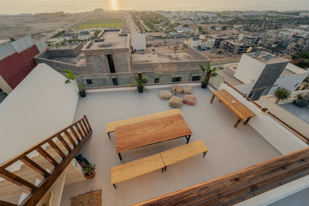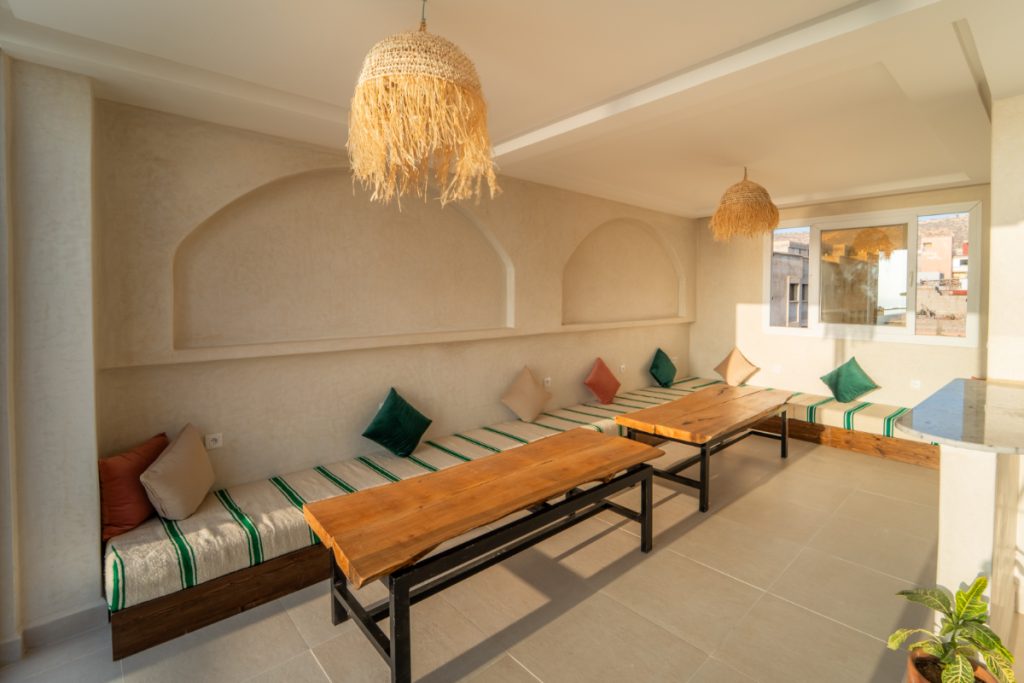 You can join day trips to Agadir’s souk, explore Paradise Valley’s natural pools, or try sand-surfing in the dunes. There are also regular workshops – Moroccan cooking classes, pottery sessions, local craft – and community evenings with rooftop music, fires, or simply shared conversation.