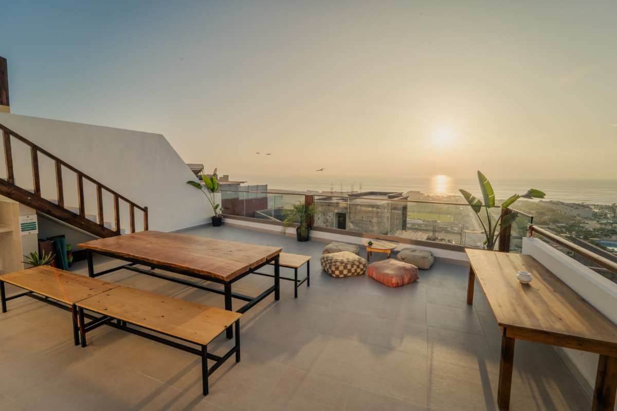 Facilities are centred around what matters: a rooftop terrace with ocean views, a coworking/lounge space, shared dining zones, and a sense of flow between private and communal life.