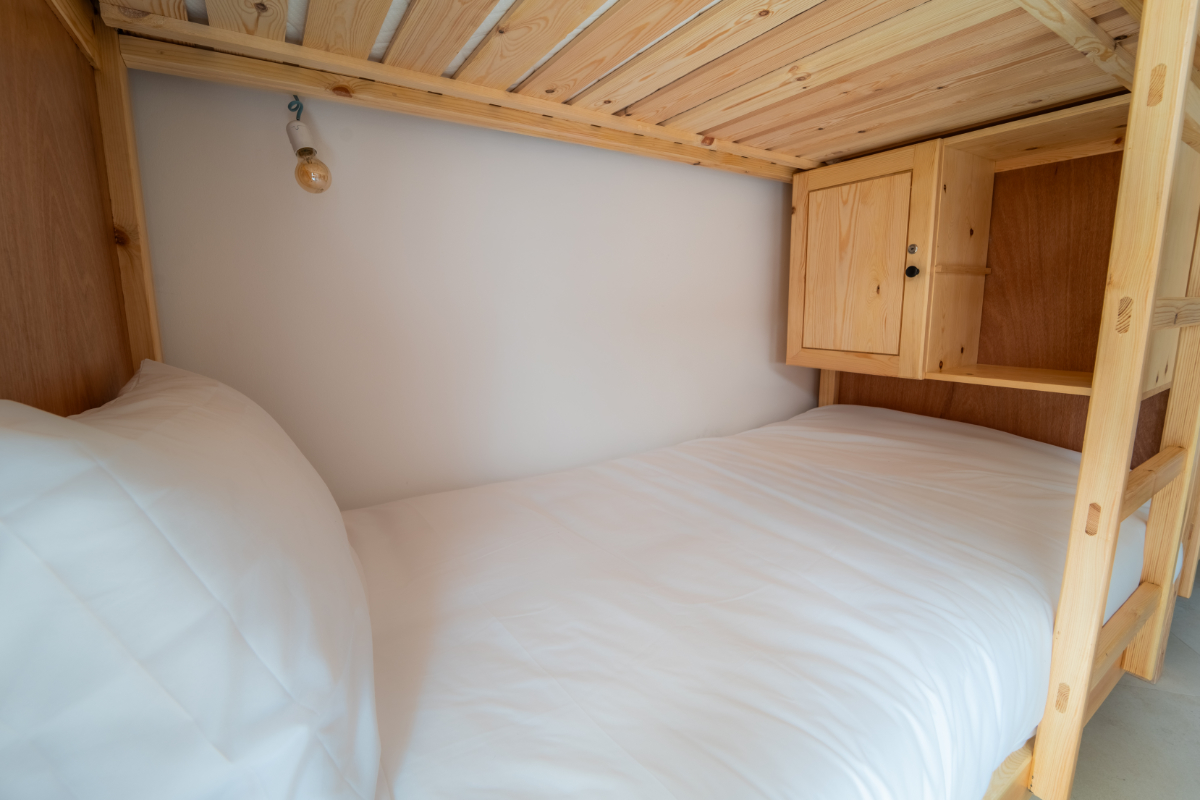 Nomaya offers a range of room types so you can choose how you live: community or private, work or rest. There are shared dorms, 4-bed rooms, and private suites. In shared rooms, you’ll find personal lockers, fresh towels, simple modern bathrooms, and daily cleaning.