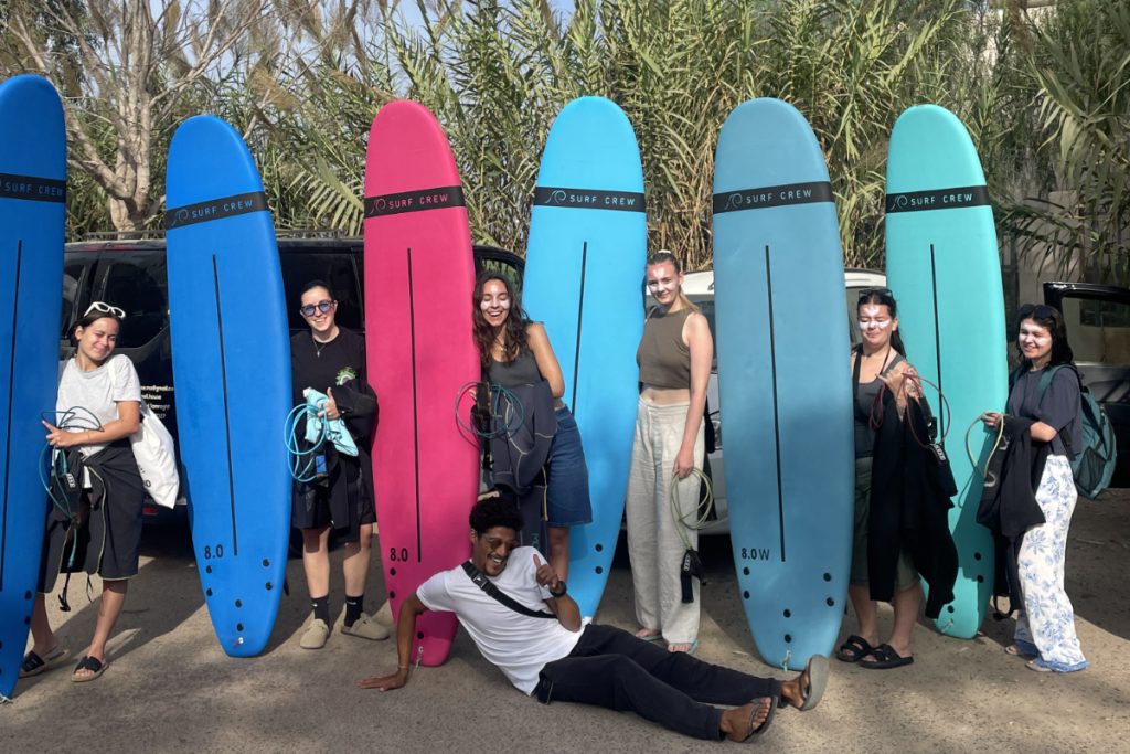 The closest airport to Nomaya is Agadir Al Massira (AGA), about a 45-minute drive to Tamraght. Nomaya can arrange car transfers from the airport – just forward your flight details when you book. Once you arrive, you’re right in the heart of the surf village – easy to walk or get around for lessons, food, and community time.