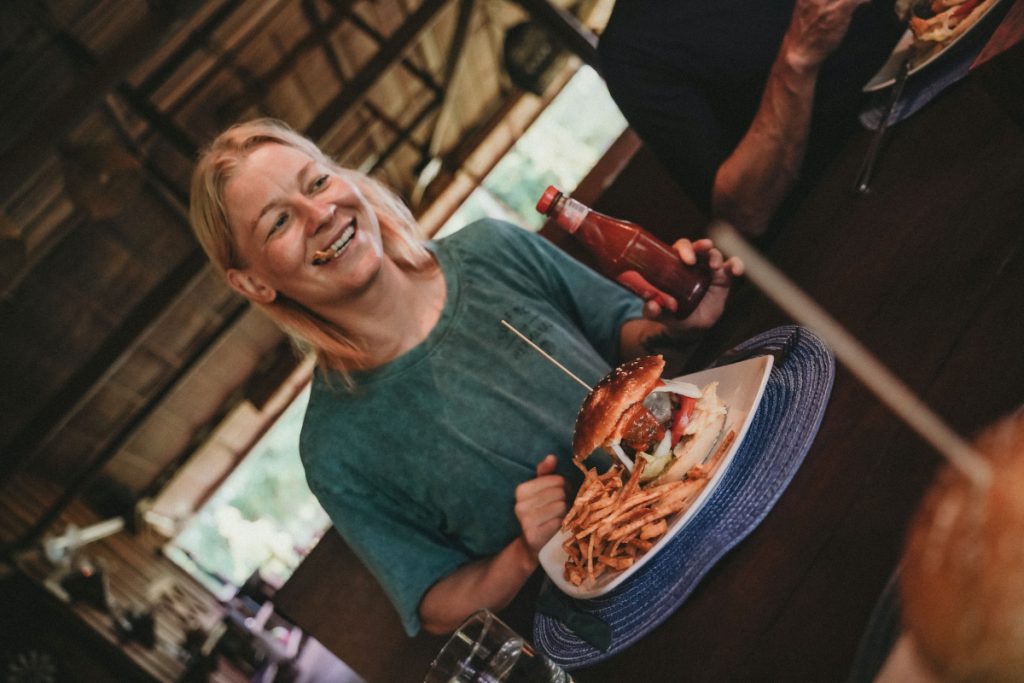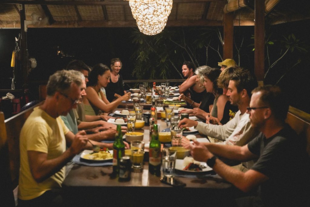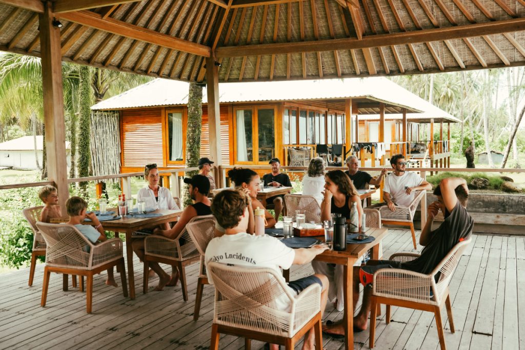 Expect to start your day with tropical fruits, fresh juices, and hearty breakfasts designed to fuel long sessions in the surf. Lunches and dinners range from fragrant Indonesian curries and spicy sambals to grilled seafood, pasta dishes, and nourishing vegetarian options – all served family-style to bring guests together around the table.